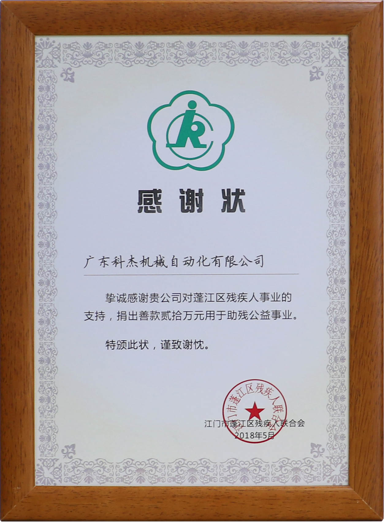 廣東科杰機(jī)械自動(dòng)化有限公司捐贈(zèng)20萬元!