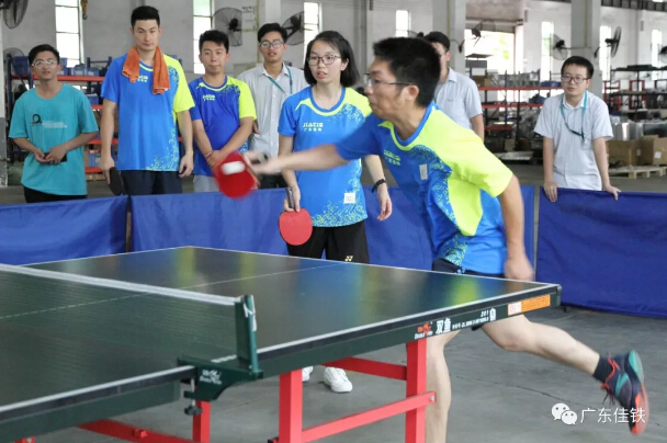 與此同時(shí),第一場乒乓球初賽在2點(diǎn)半也拉開戰(zhàn)線。第一場進(jìn)行的是A隊(duì)制造部對(duì)決C隊(duì)聯(lián)盟隊(duì),按照男單、女雙、混雙、女單、男雙的順序進(jìn)行比賽,以五局三勝制決出勝負(fù)。比賽一開始,直拍、橫拍各路選手紛紛登場,選手們的熱情空前高漲,場館里人聲鼎沸,旋轉(zhuǎn)球、弧線球……選手們亮出絕活,水平都相當(dāng)專業(yè),有的甚至不輸專業(yè)選手。最終,C隊(duì)聯(lián)盟隊(duì)以4:1的優(yōu)勢(shì)贏了A隊(duì)制造部。