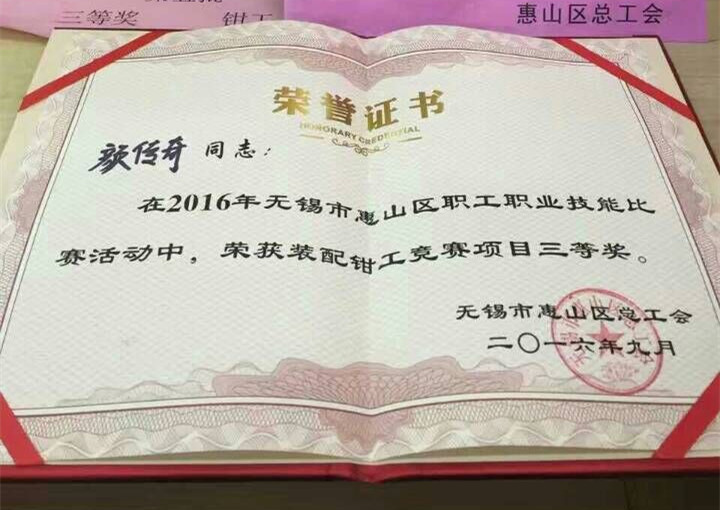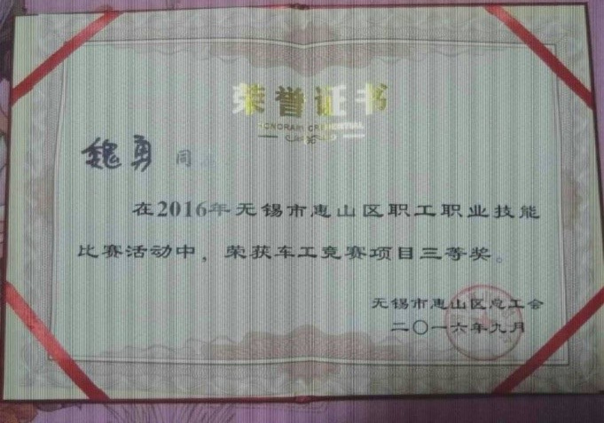 我司總裝車間顏傳奇、金工車間魏勇在初賽中脫穎而出,作為陽(yáng)山鎮(zhèn)代表參加此次惠山區(qū)職工職業(yè)技能大賽,并雙雙獲得三等獎(jiǎng)。