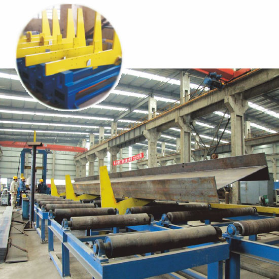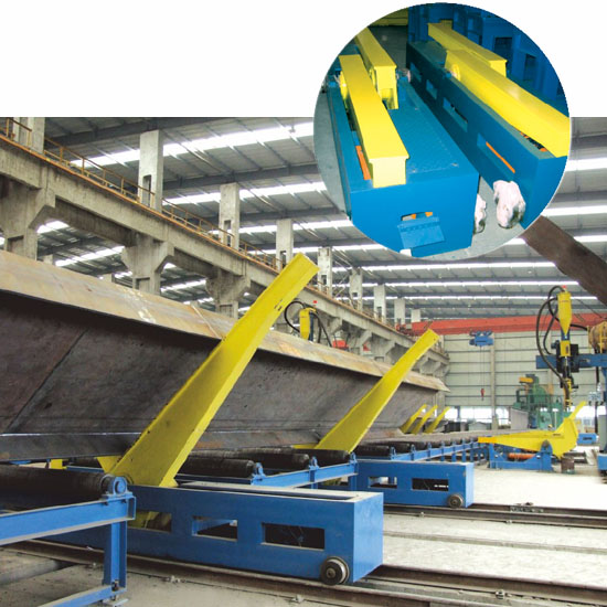 移鋼機 H型鋼組立完畢后,兩臺移鋼機抬起工件送至60°翻轉(zhuǎn)支架上翻轉(zhuǎn)并焊接。