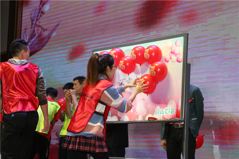 今年晚會(huì)節(jié)目全公司分成兩個(gè)隊(duì)伍,進(jìn)行舞蹈、小品、游戲、歌唱四個(gè)環(huán)節(jié)比拼,可謂是跌宕起伏、扣人心弦,最后的歌唱節(jié)目《佳夢(mèng)鐵戰(zhàn)》把整場(chǎng)節(jié)目表演推至高潮。