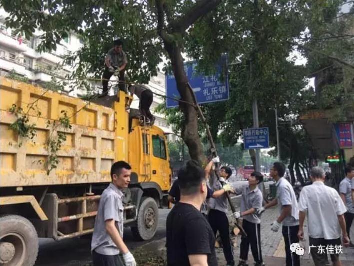 8月23日,強(qiáng)臺(tái)風(fēng)“天鴿”正面襲擊江門(mén),主城區(qū)受嚴(yán)重影響,無(wú)數(shù)樹(shù)木倒塌,街道被阻,人民出行受到嚴(yán)重影響。廣東佳鐵災(zāi)后應(yīng)相關(guān)部門(mén)號(hào)召支持蓬江區(qū)臺(tái)風(fēng)恢復(fù)工作,派出佳鐵男兒和車輛協(xié)助清理主要路面、樹(shù)木,讓市民暢通出行。